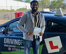 Ollie said, “Thanks Chris just wanted to say that you made learning to drive easy and comfortable and helped me to get a first time pass, I would Highly recommend you to any one looking for an instructor “